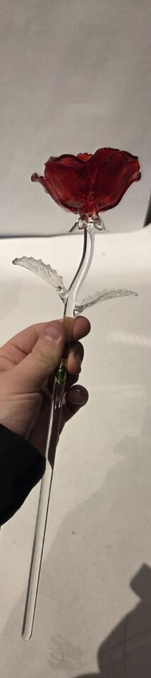 WATERFORD 40001551 CRYSTAL FLEUROLOGY 14.5" COLORED RED ROSE GLASS SCLUPTURE This item is brand new and internally sealed in an open box as shown.