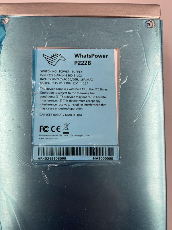 WhatsPower P222B PSU for MicroBT Whatsminer P222B-AR-14-3300-B-V02 This item is brand new and comes as shown.