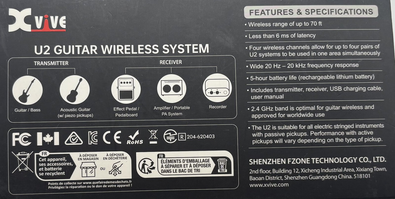 Xvive U2 Wireless Guitar Receiver and Transmitter System This item is new as shown.