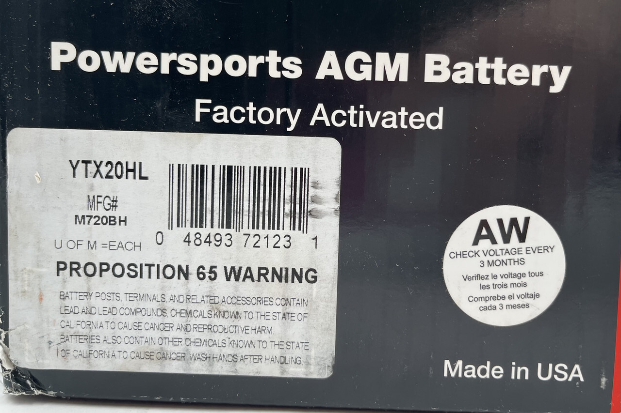 YUASA YTX20HL POWERSPORTS AGM BATTERY 12 VOLT This item is used in a freight worn box as shown