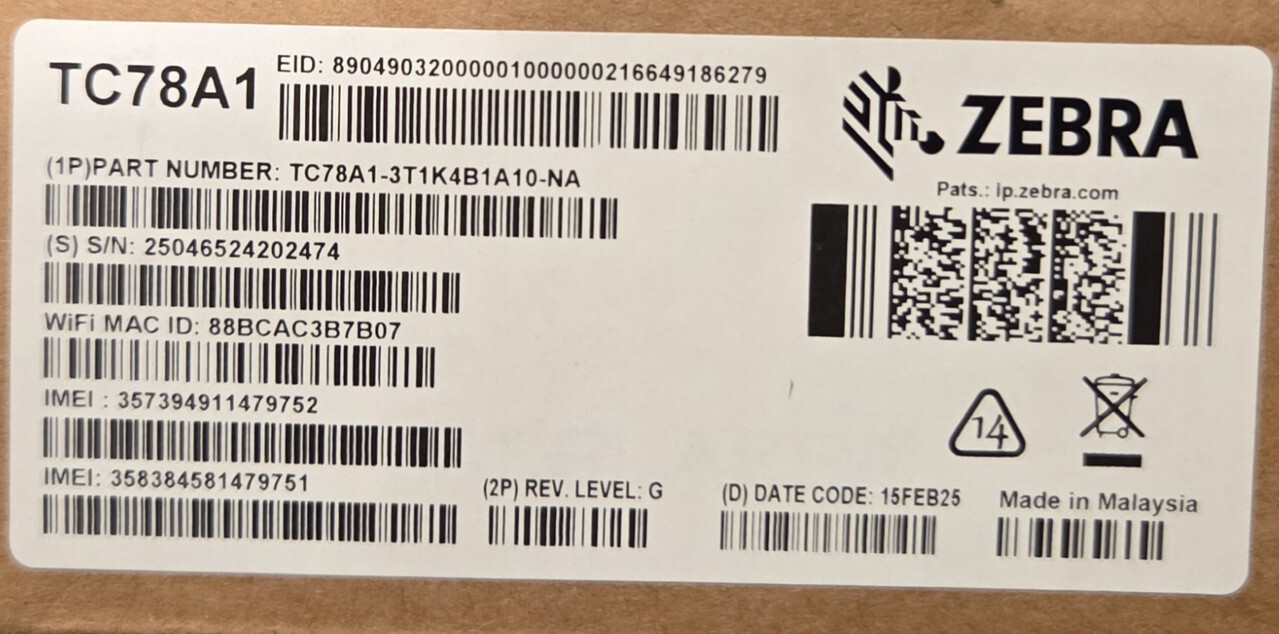 ZEBRA TC78A1-3T1K4B1A10-NA HANDHELD MOBILE COMPUTER WIFI 8GB RAM 128GB W/BATTERY This item is new as shown.