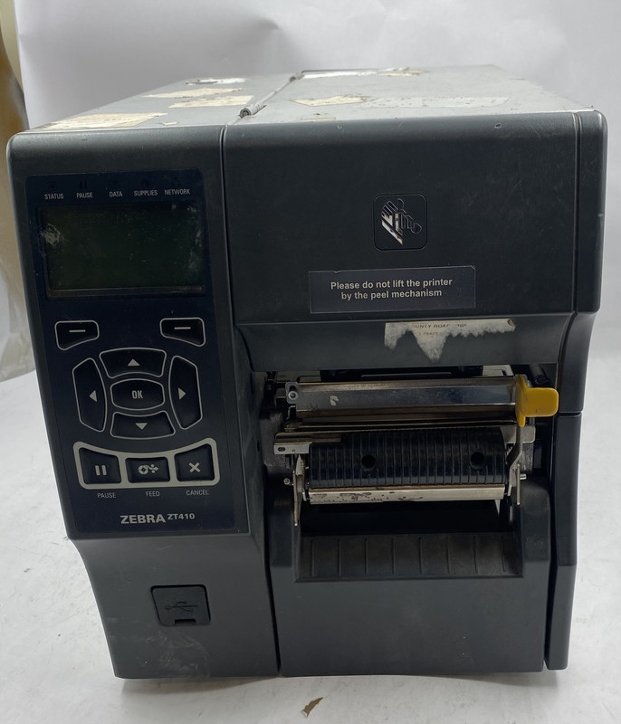 Zebra Zt410 123100-210 Dual Transfer Thermal Label Printer This item is used with significant wear as shown.