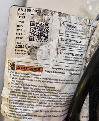 Zoeller G189-C 189-0029 Sewage Grinder Pump 460v 3450 Rpm 2hp 3ph This item is in open box condition with a missing leg as shown
