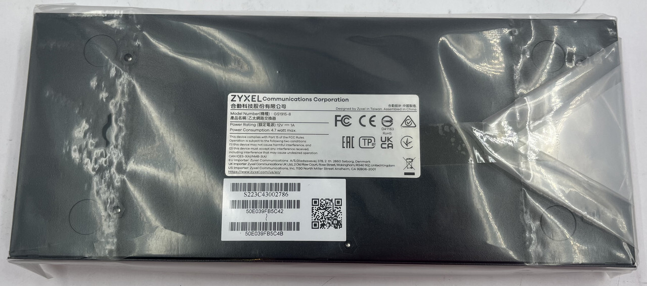 ZYXEL GS1915-8 GIGABIT 8-PORT SMART NEBULA CLOUD MANAGED POE SWITCH This item is new and internally sealed in an open box as shown.